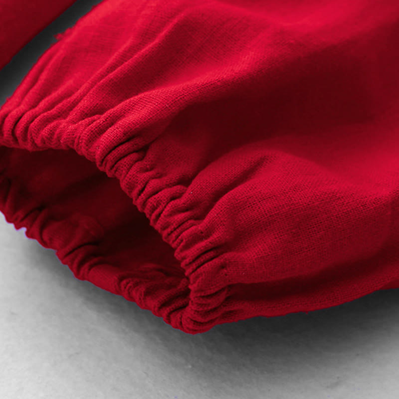 Buddha Stones Plain Long Sleeve Lace-up Desgin Women's Cotton Midi Dress With Pockets - Red - US8-10,UK/AU12-14,EU40-42 (2XL) - image 11