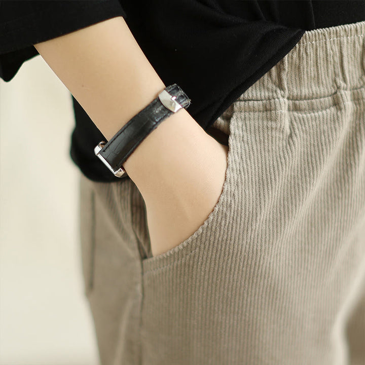 Buddha Stones Plain Tapered Cotton Corduroy Women's Harem Thermal Fleece-Lined Pants With Pockets