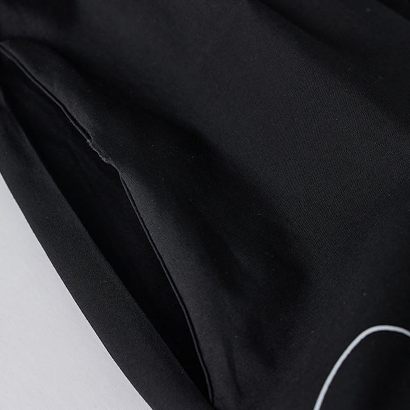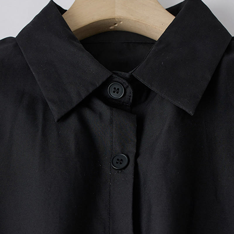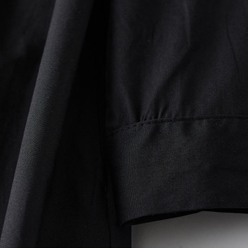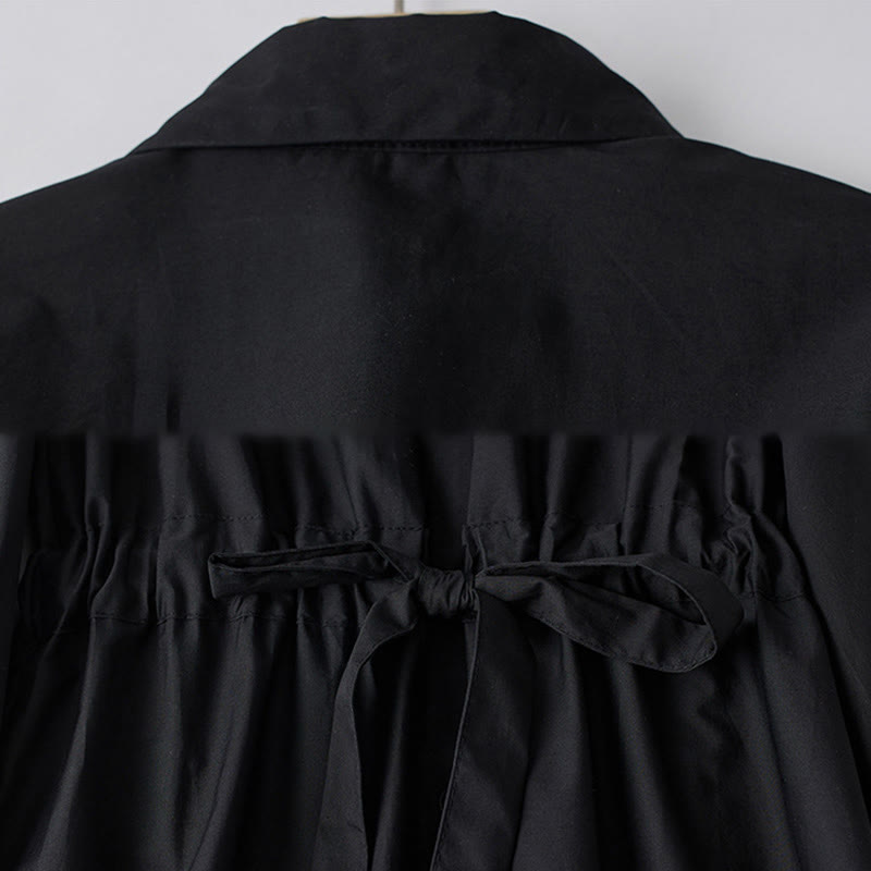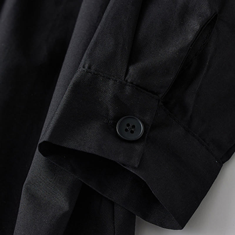 Buddha Stones Printing Irregular Lines Long Sleeve Lace-up Lapel Cotton Midi Dress With Pockets - Black - US8-10,UK/AU12-14,EU40-42 (2XL) - image 1