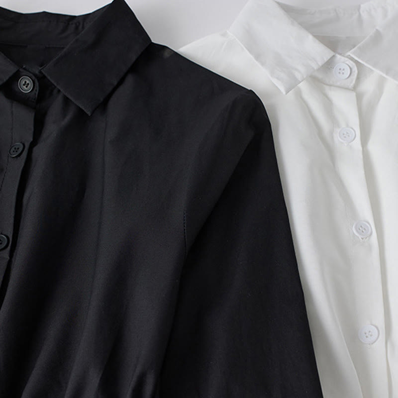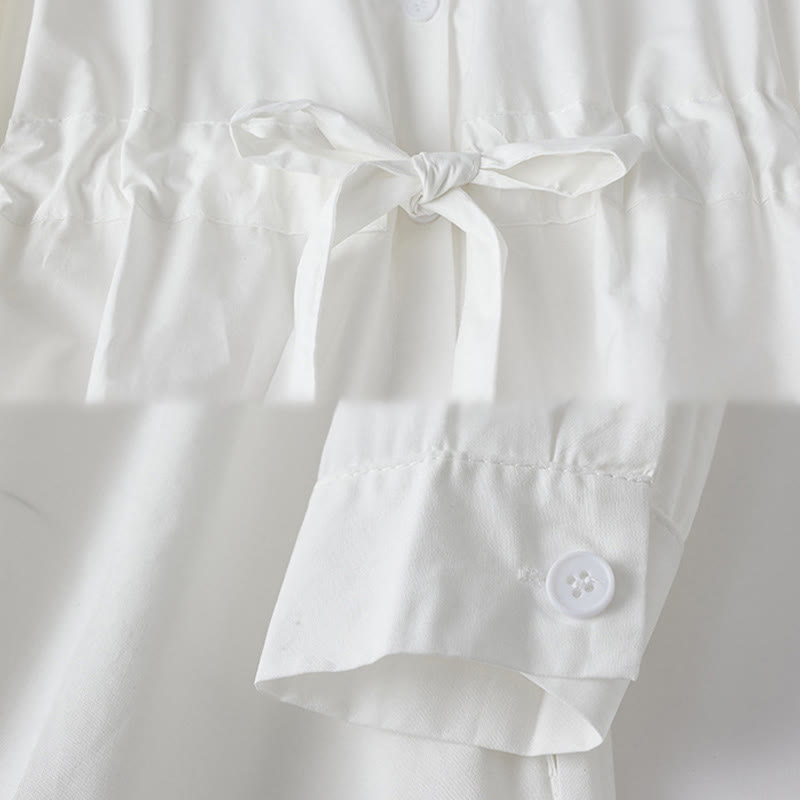 Buddha Stones Printing Irregular Lines Long Sleeve Lace-up Lapel Cotton Midi Dress With Pockets - White - US8-10,UK/AU12-14,EU40-42 (2XL) - image 10