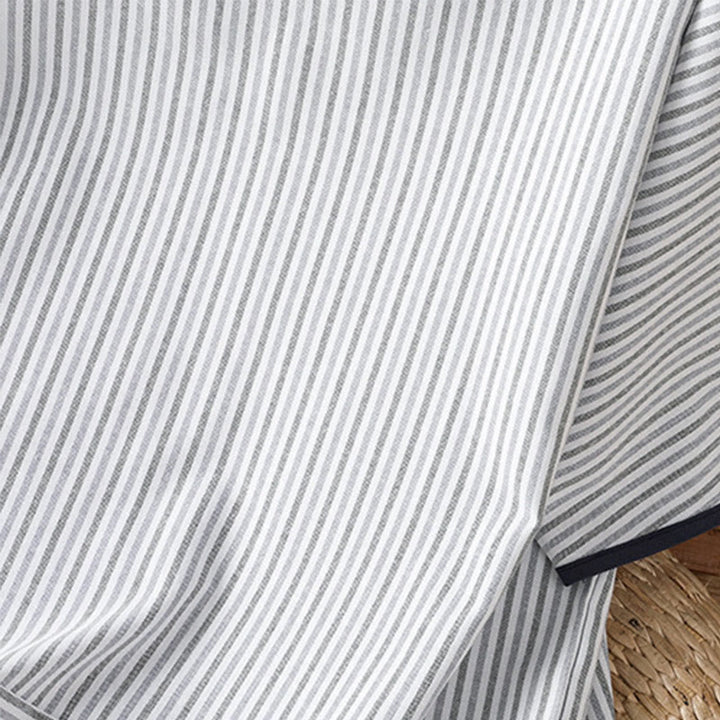 Buddha Stones Pullover Stripes Crew Neck Design Women's Cotton Short Sleeves Shirt