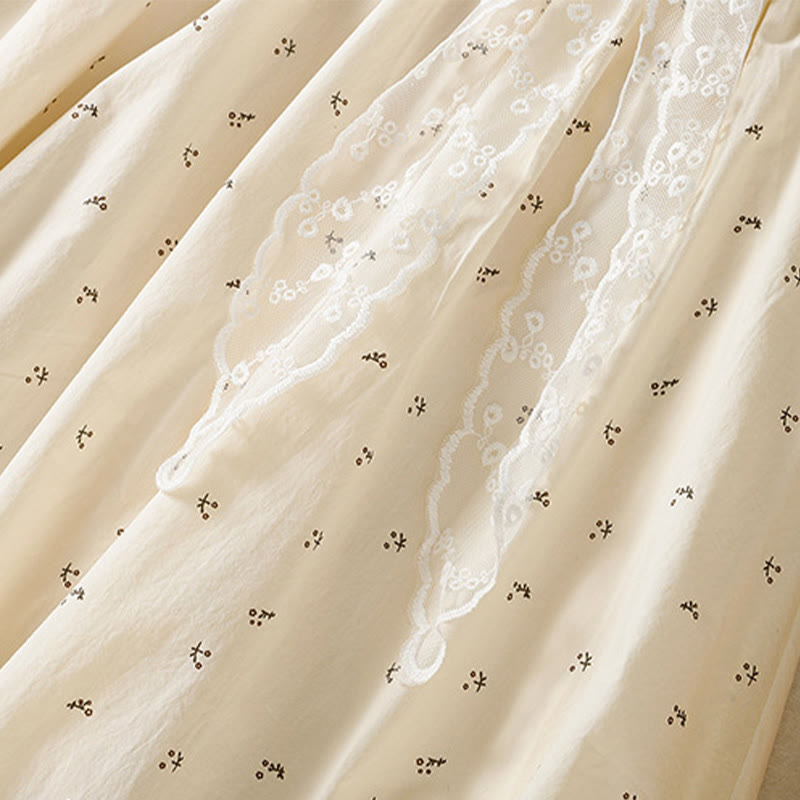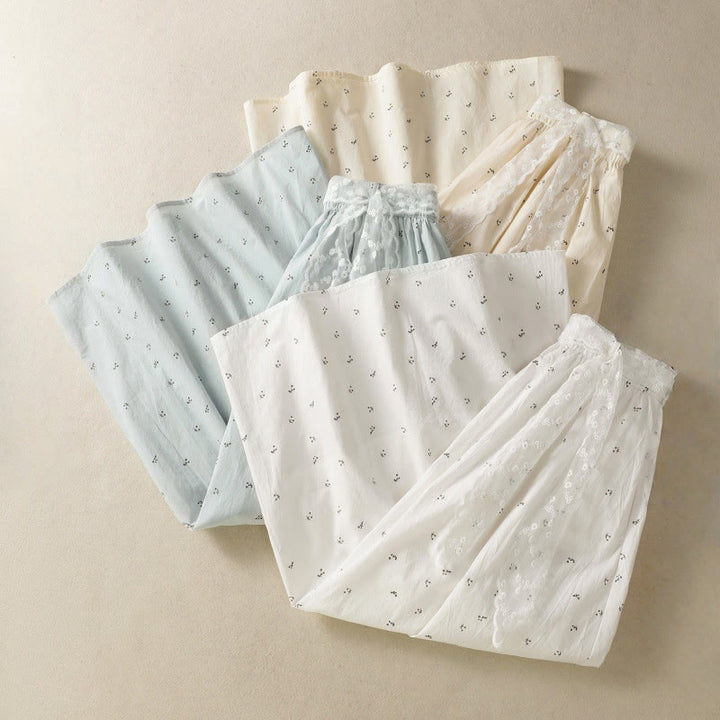 Buddha Stones Small Flowers Elastic Waist Cotton Women's Skirt With Pockets