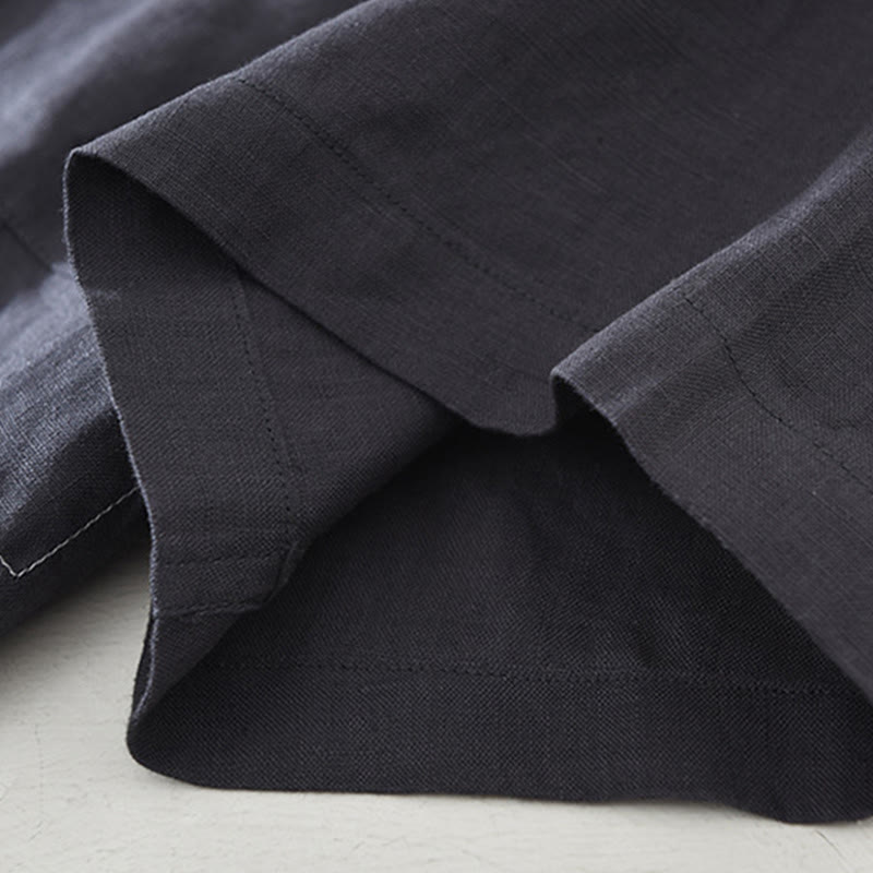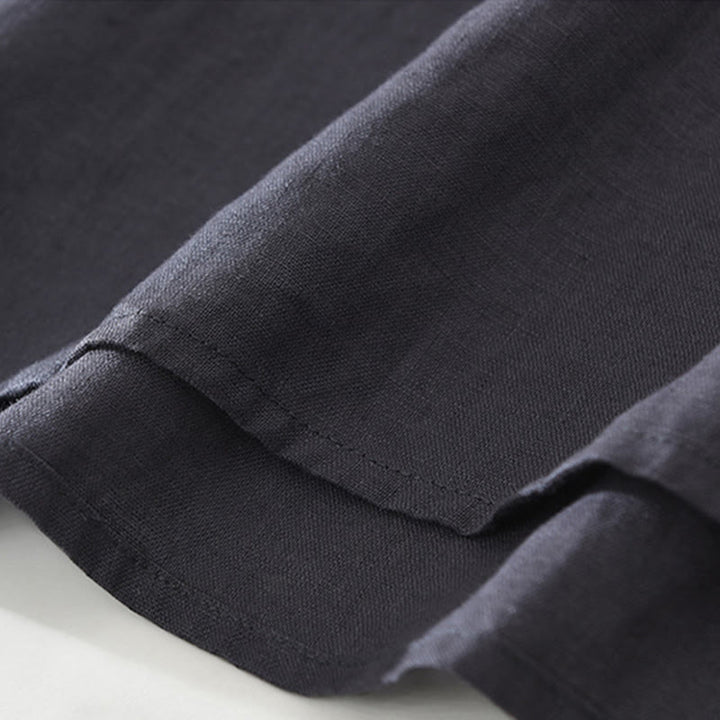 Buddha Stones Summer Half Buttons Design Lapel Men's Short Sleeve Linen Shirt With Pocket - image 14