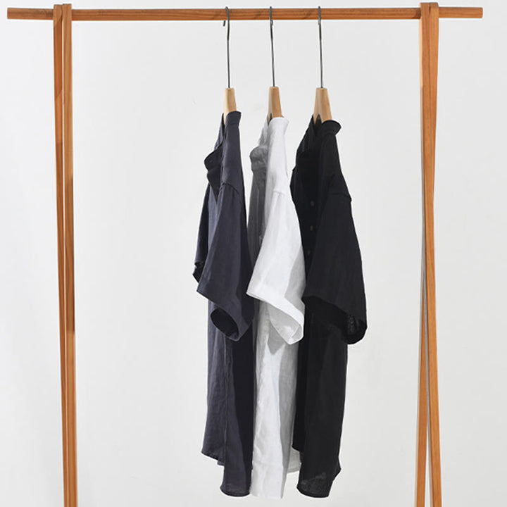 Buddha Stones Summer Half Buttons Design Lapel Men's Short Sleeve Linen Shirt With Pocket