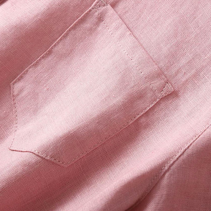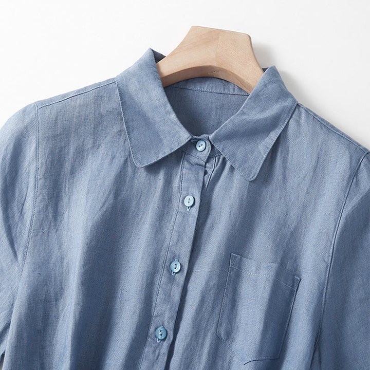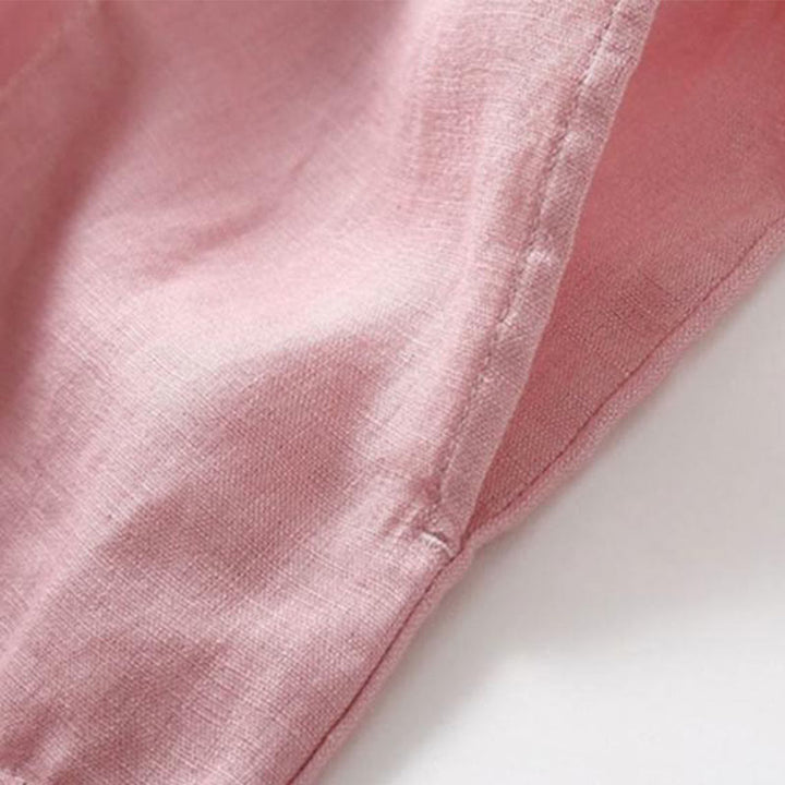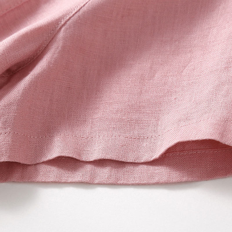Buddha Stones Summer Lace-up Plain Short Sleeve Cotton Midi Dress With Pockets