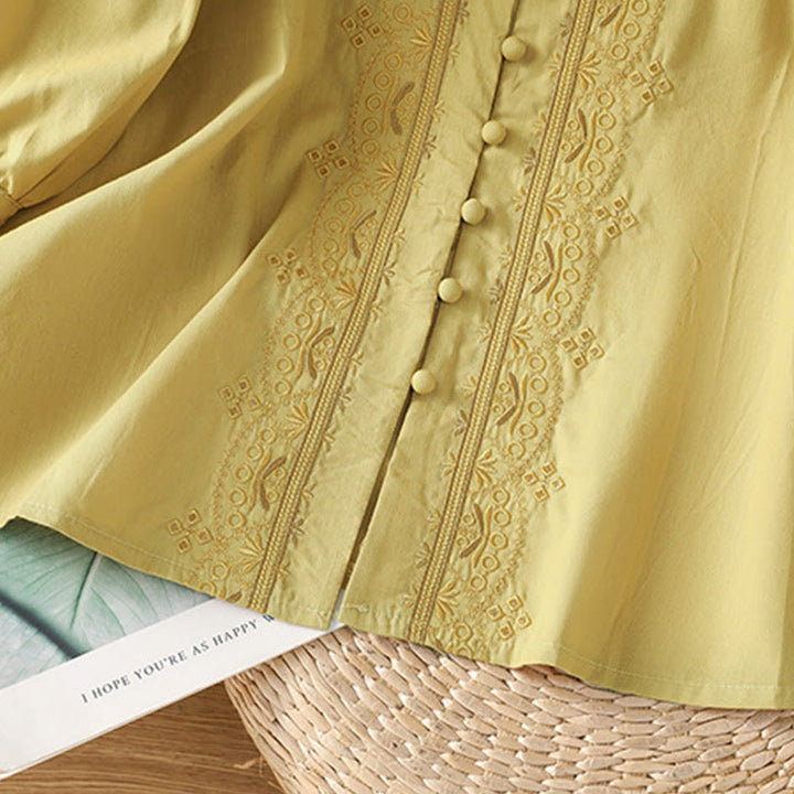 Buddha Stones Symmetrical Embroidery Cotton Women's V-neck Shirt - image 29