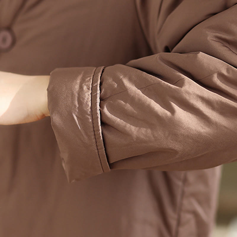 Buddha Stones Winter V-Neck Buttons Long Sleeve Thermal Women's Cotton Coat With Pockets