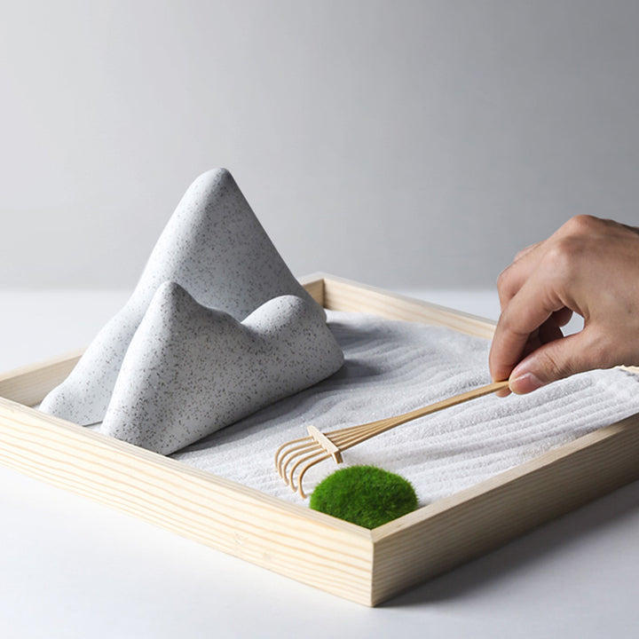 Grass*2, Rake*1, Rocks*3(Small Rock*1, Medium Rock*1, Large Rock*1), Rectangular Wooden Box*1, and Sand (800g). - Note: