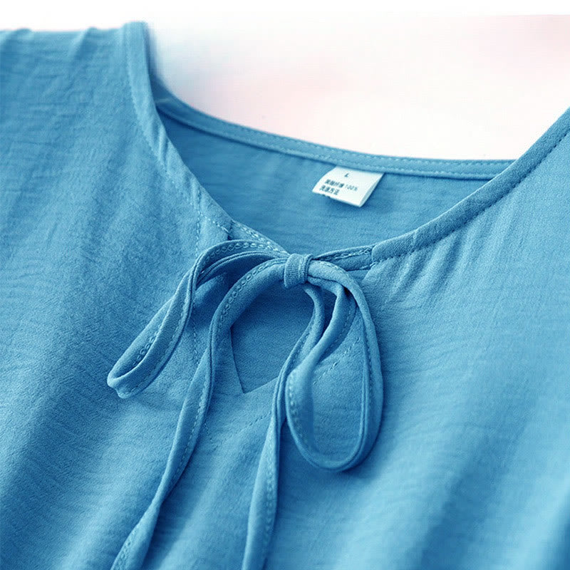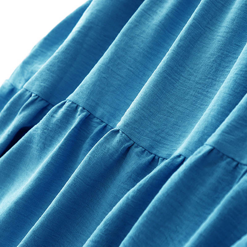 Buddha Stones Casual Plain Handmade Lace-up Midi Dress Cotton Linen Sleeveless Dress With Pockets - SteelBlue - US8-10,UK/AU12-14,EU40-42 (2XL) - image 0