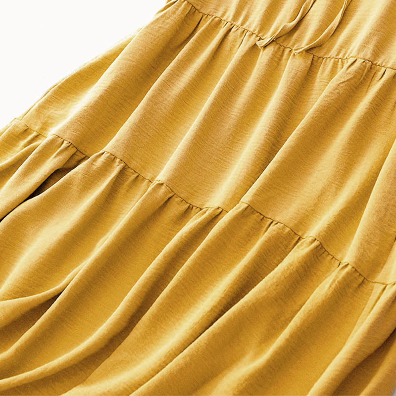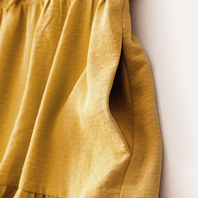 Buddha Stones Casual Plain Handmade Lace-up Midi Dress Cotton Linen Sleeveless Dress With Pockets - Goldenrod - US8-10,UK/AU12-14,EU40-42 (2XL) - image 11