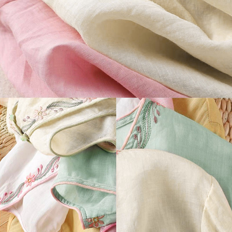 Buddha Stones Spring Retro Embroidery Button Design Three Quarter Sleeve Women's Cotton Shirt - LightPink - US12,UK/AU16,EU44 (4XL) - image 1