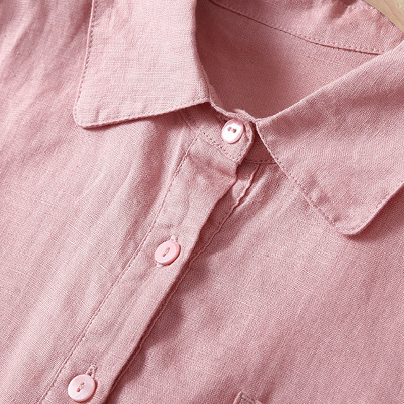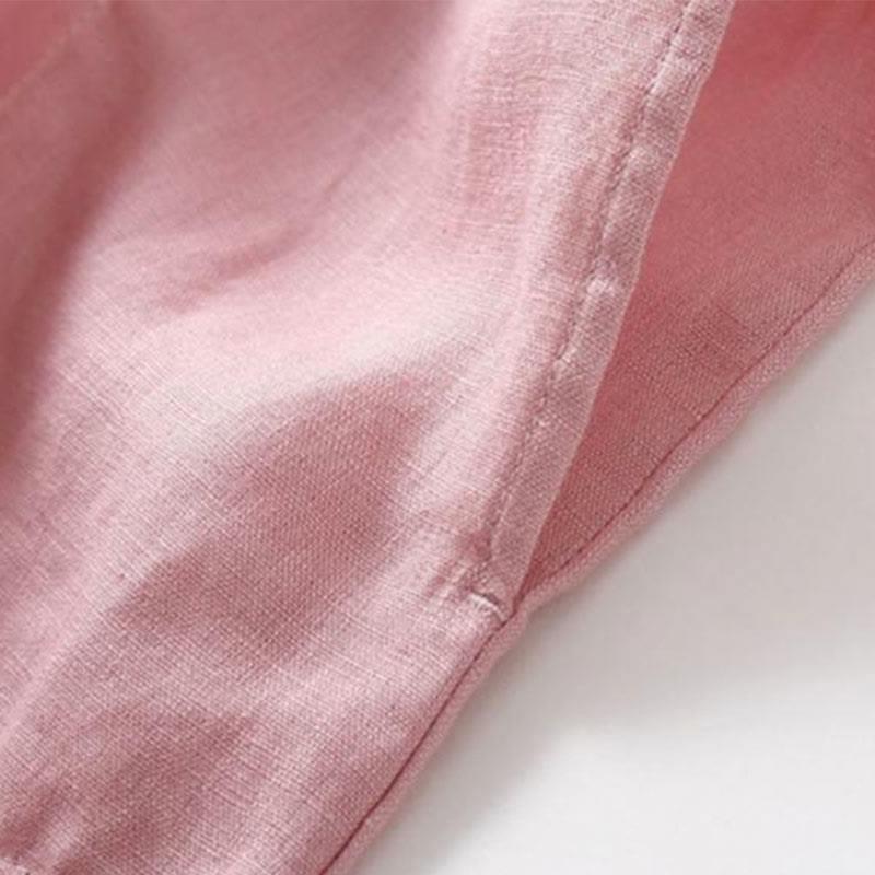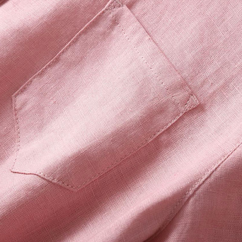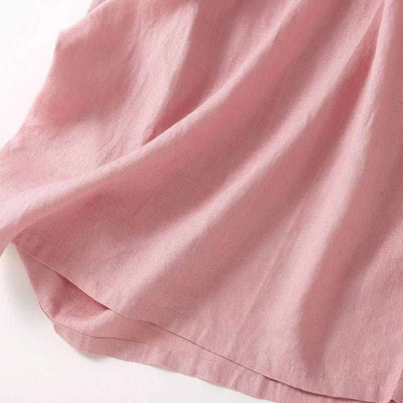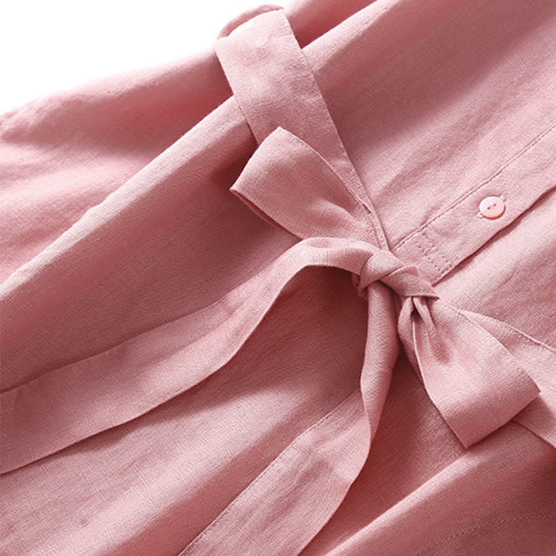 Buddha Stones Summer Lace-up Plain Short Sleeve Cotton Midi Dress With Pockets - LightPink - US8-10,UK/AU12-14,EU40-42 (2XL) - image 1