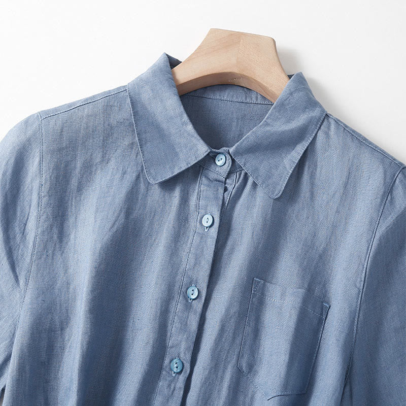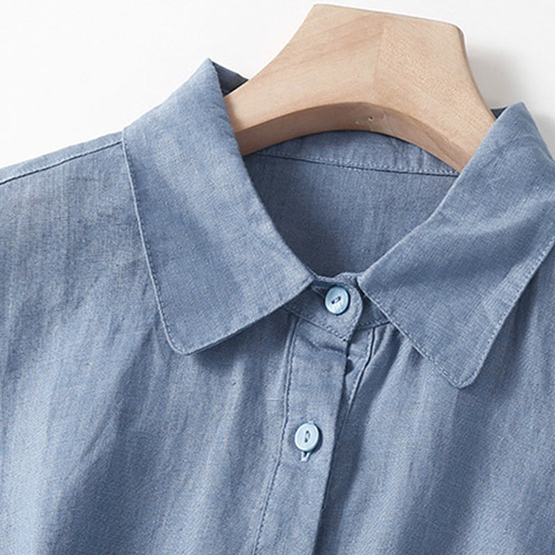Buddha Stones Summer Lace-up Plain Short Sleeve Cotton Midi Dress With Pockets - LightSteelBlue - US8-10,UK/AU12-14,EU40-42 (2XL) - image 9