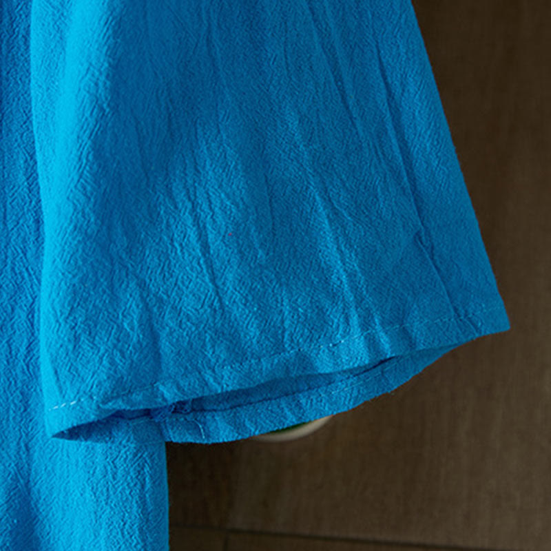 Buddha Stones Vintage Embroidery Frog-button Half Sleeve High Waist Cotton Linen Women's Midi Dress - DodgerBlue - US16,UK/AU20,EU48 (5XL) - image 18
