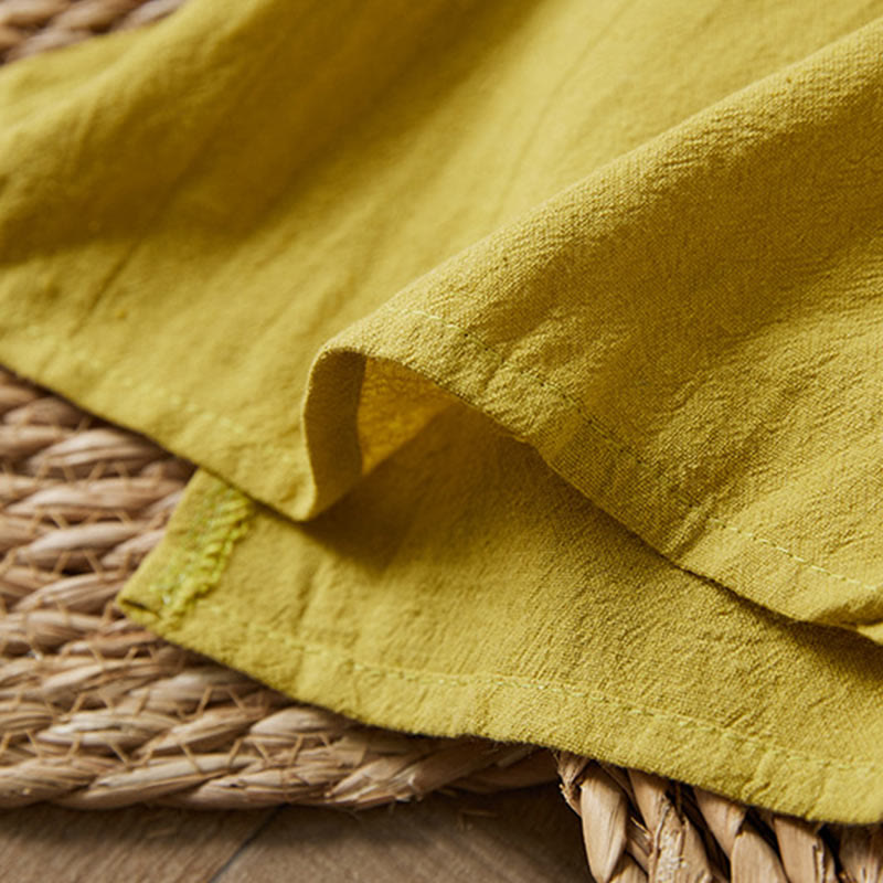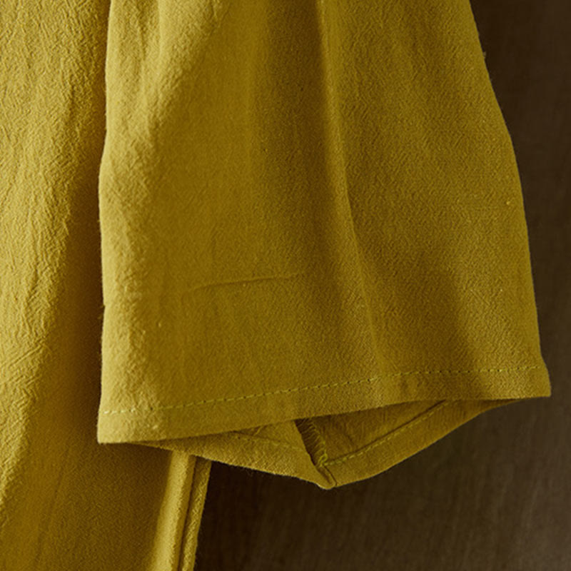 Buddha Stones Vintage Embroidery Frog-button Half Sleeve High Waist Cotton Linen Women's Midi Dress - Goldenrod - US16,UK/AU20,EU48 (5XL) - image 0