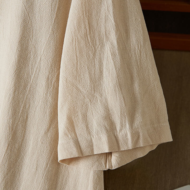 Buddha Stones Vintage Embroidery Frog-button Half Sleeve High Waist Cotton Linen Women's Midi Dress - Beige - US16,UK/AU20,EU48 (5XL) - image 6