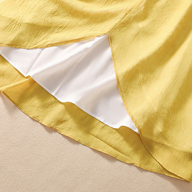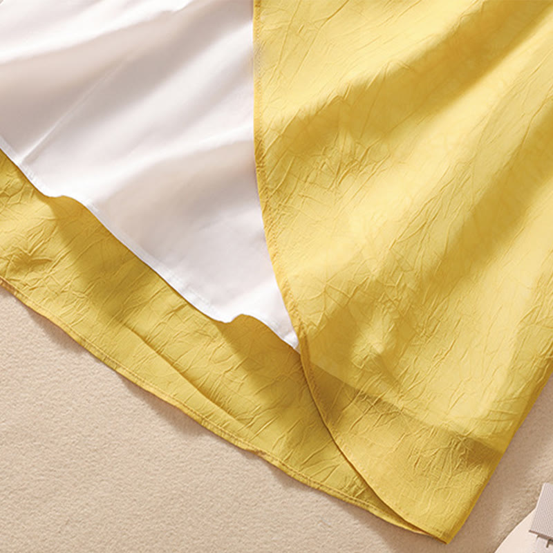 Buddha Stones Women's Flower Embroidery Frog-Button Shirt Dress Wide Leg Pants - Yellow Shirt - US8-10,UK/AU12-14,EU40-42 (2XL) - image 1