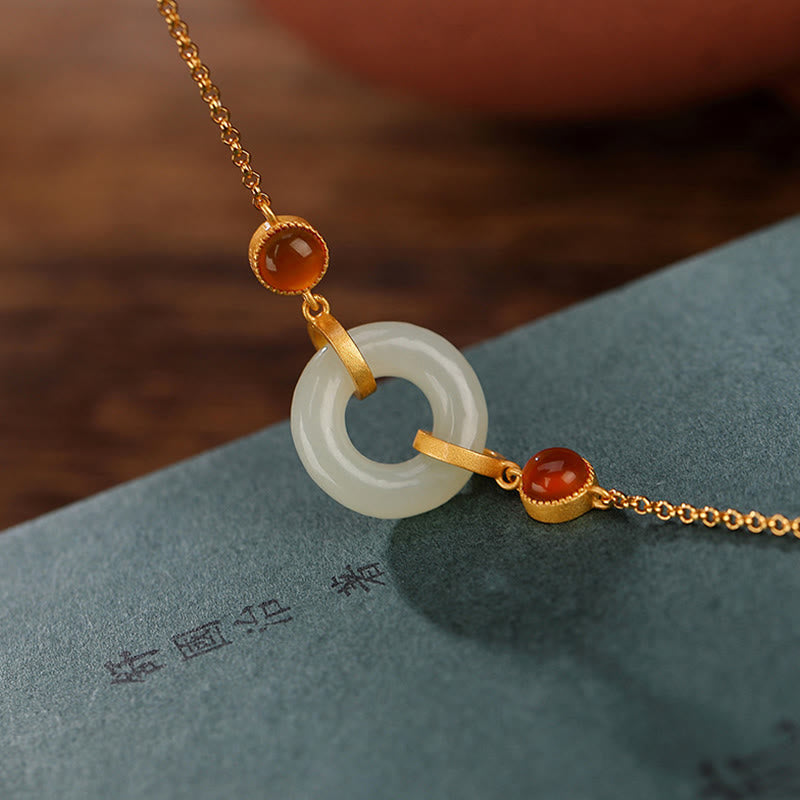 • Material: Hetian Jade, Red Agate, 925 Sterling Silver Plated Gold