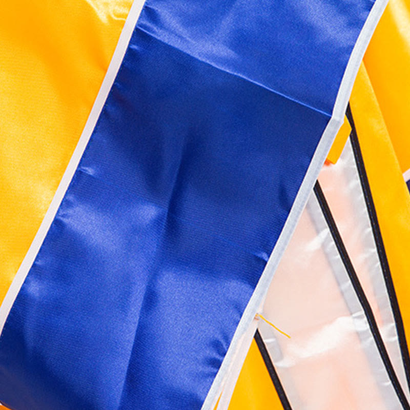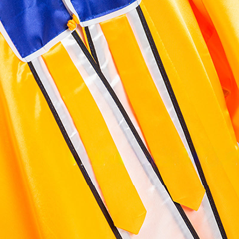- Vibrant Color & Symbolic Embroidery: The bright fabric is paired with blue trim and embroidered auspicious patterns, symbolizing protection, blessings, and spiritual harmony.