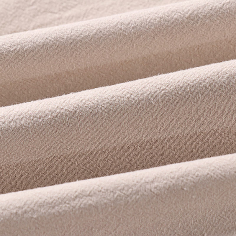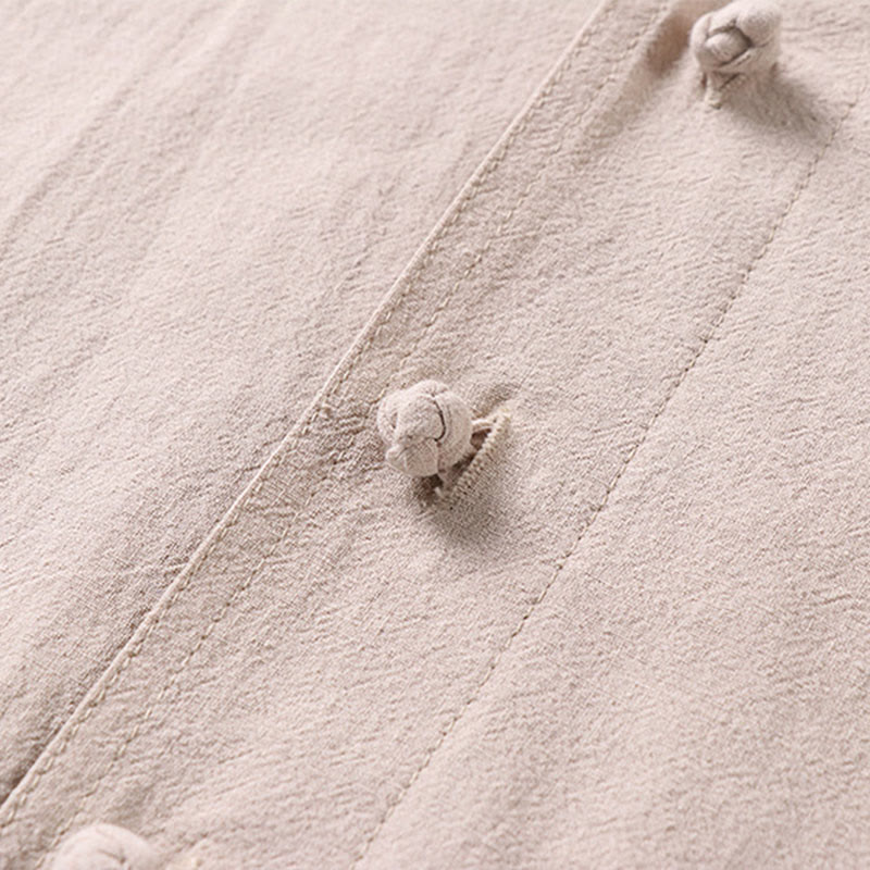 Buddha Stones Casual Plain Color Three Quarter Sleeve Front Button Cotton Linen Men's Shirt With Pockets