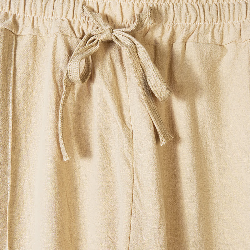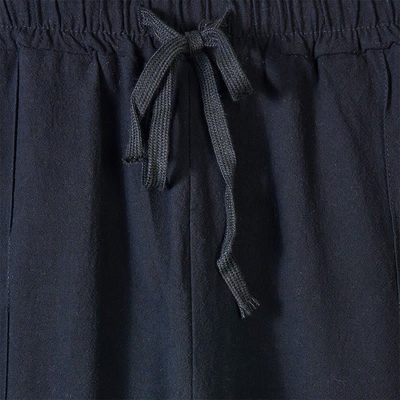 Buddha Stones Solid Color Side Buttons Men's Cotton Pants With Pockets