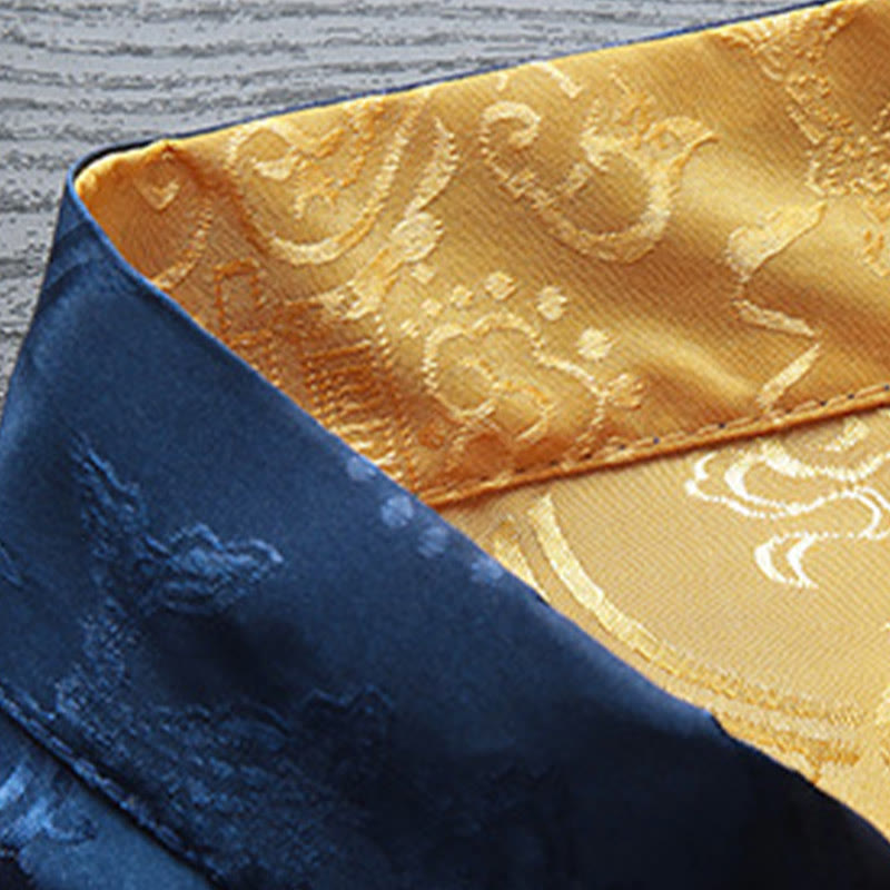 Buddha Stones 2Pcs Men's Tang Suit Koi Fish Pattern Frog-Button Long Sleeve Shirt Pants Set - RoyalBlue - US/UK/AU42,EU52 (3XL) - image 7