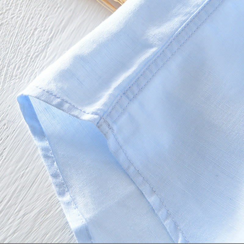 Buddha Stones Solid Color Half Button Design Stand Collar Men's Short Sleeve Cotton Linen Shirt - LightCyan - US/UK/AU46,EU56 (5XL) - image 18