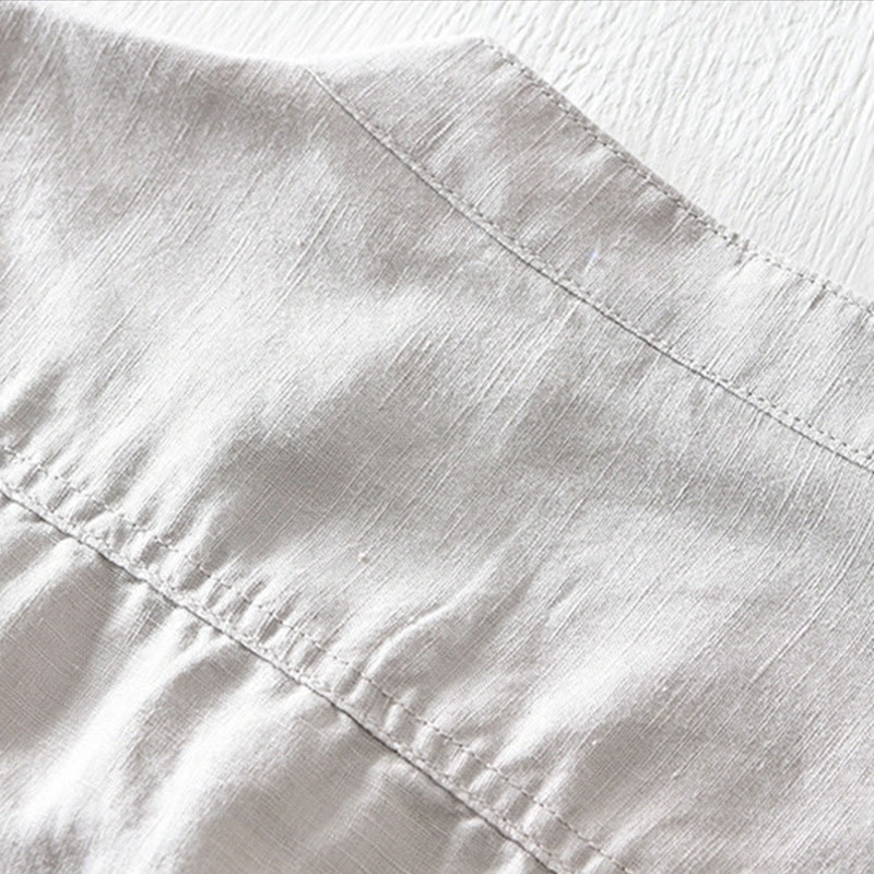 Buddha Stones Solid Color Half Button Design Stand Collar Men's Short Sleeve Cotton Linen Shirt - Linen - US/UK/AU46,EU56 (5XL) - image 0