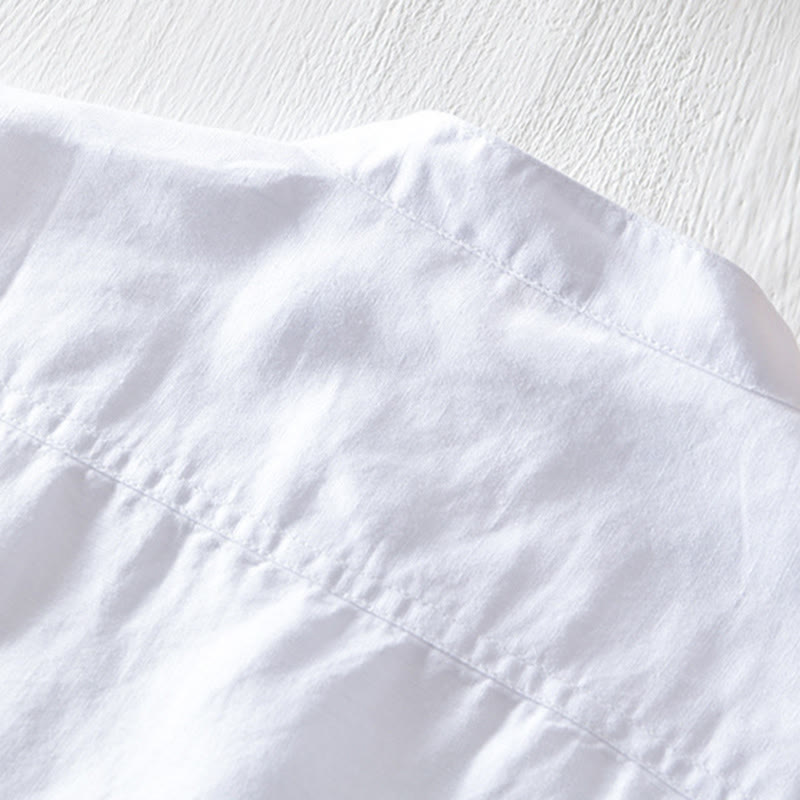 Buddha Stones Solid Color Half Button Design Stand Collar Men's Short Sleeve Cotton Linen Shirt - White - US/UK/AU46,EU56 (5XL) - image 5