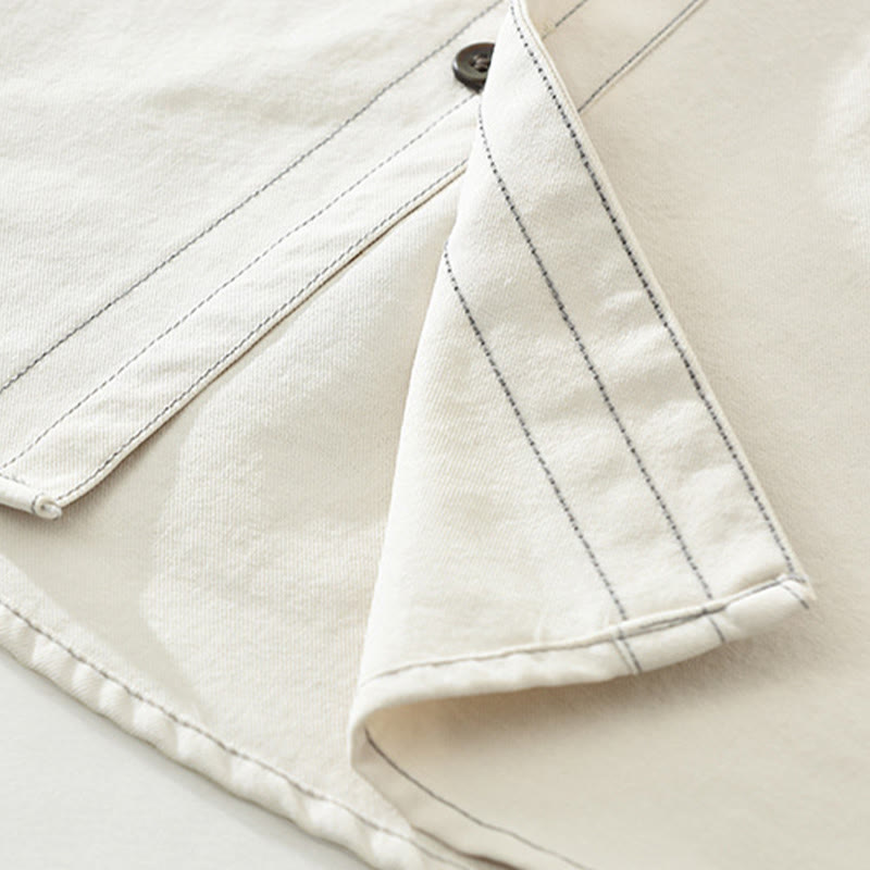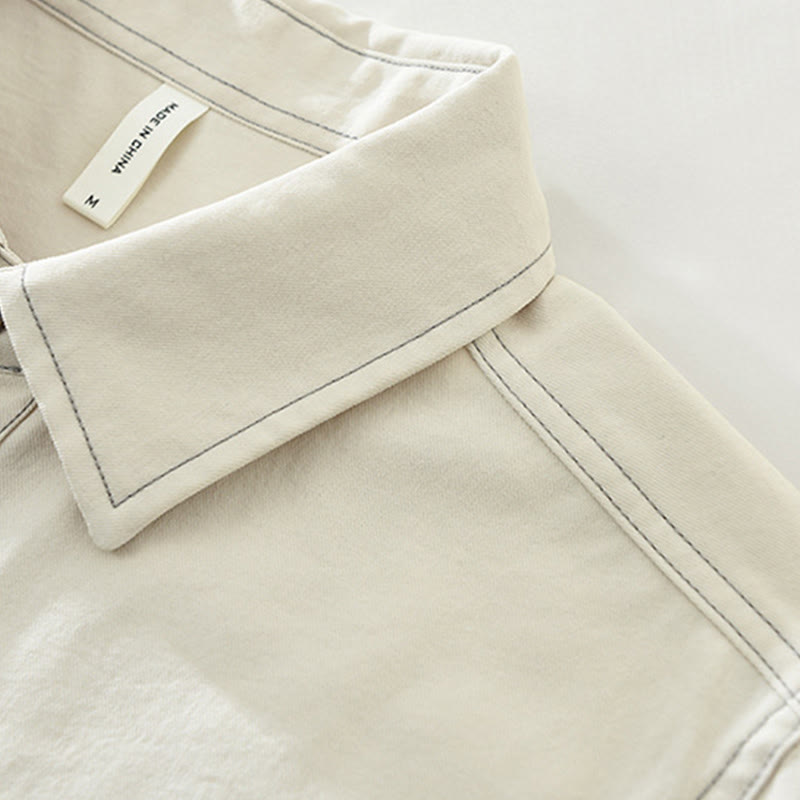Buddha Stones Commute Buttons Long Sleeve Plain Shirt Men Clothing With Pocket - Beige - US/UK/AU42,EU52 (3XL) - image 4