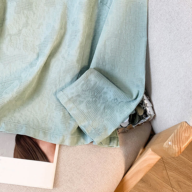 Buddha Stones Commute Jacquard Chinese Frog-Button Mandarin Collar Long Sleeve Women's Cotton Shirt - MediumAquamarine - US8-10,UK/AU12-14,EU40-42 (2XL) - image 0