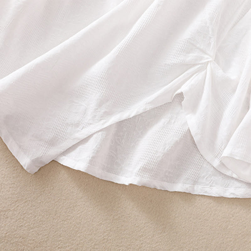 Buddha Stones Jacquard Irregular Hem Pleated Design Women's Cotton Long Sleeve Shirt - White - US8-10,UK/AU12-14,EU40-42 (2XL) - image 8