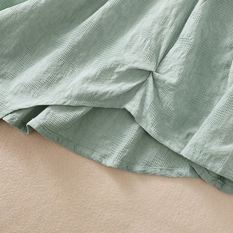 Buddha Stones Jacquard Irregular Hem Pleated Design Women's Cotton Long Sleeve Shirt - Linen - US8-10,UK/AU12-14,EU40-42 (2XL) - image 25
