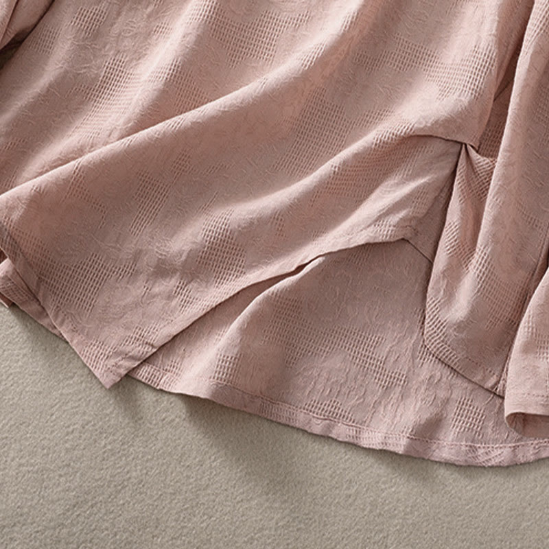 Buddha Stones Jacquard Irregular Hem Pleated Design Women's Cotton Long Sleeve Shirt - DarkSalmon - US8-10,UK/AU12-14,EU40-42 (2XL) - image 16