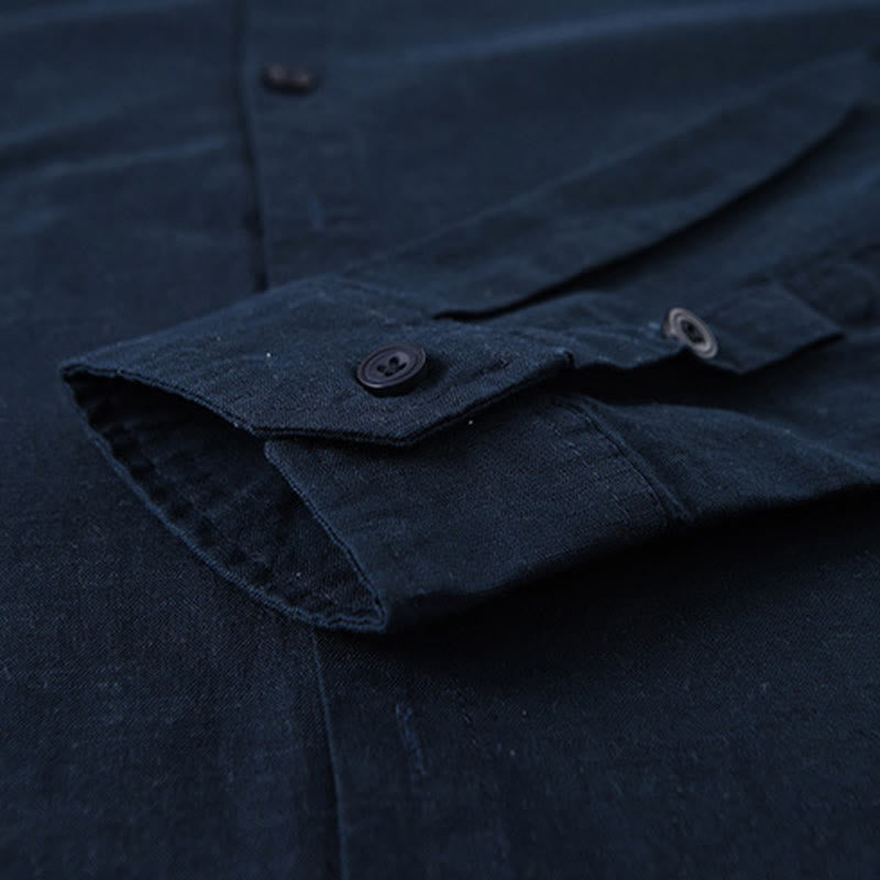Buddha Stones Men's Spring Pure Color Stand Collar Cotton Linen Long Sleeve Shirt - MidnightBlue - US/UK/AU42,EU52 (3XL) - image 0