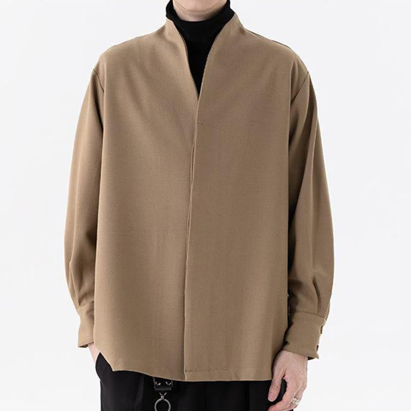 Buddha Stones Solid Fall Long Sleeve Hidden Half Button Design Men's Shirts - Beige - US/UK/AU46,EU56 (5XL) - image 0