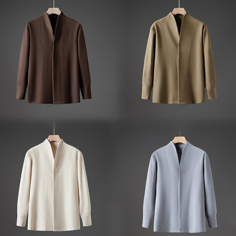 Buddha Stones Solid Fall Long Sleeve Hidden Half Button Design Men's Shirts