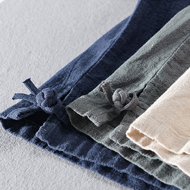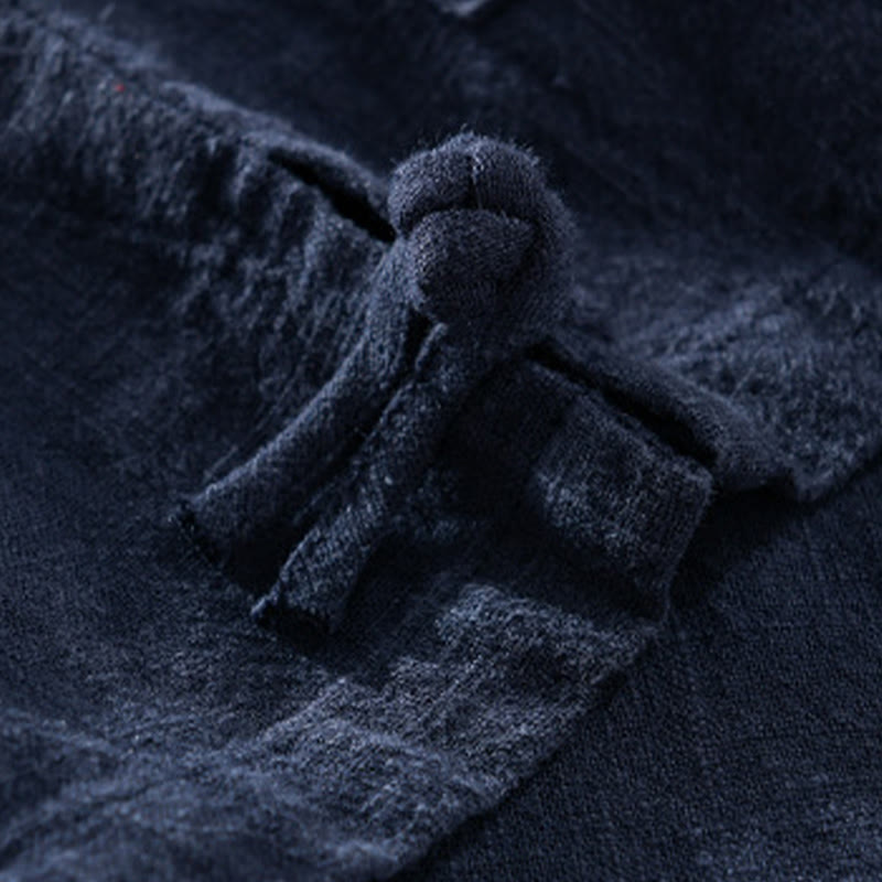 Buddha Stones Solid Long Sleeve Button Down Ramie Cotton Men's Shirts With Pockets