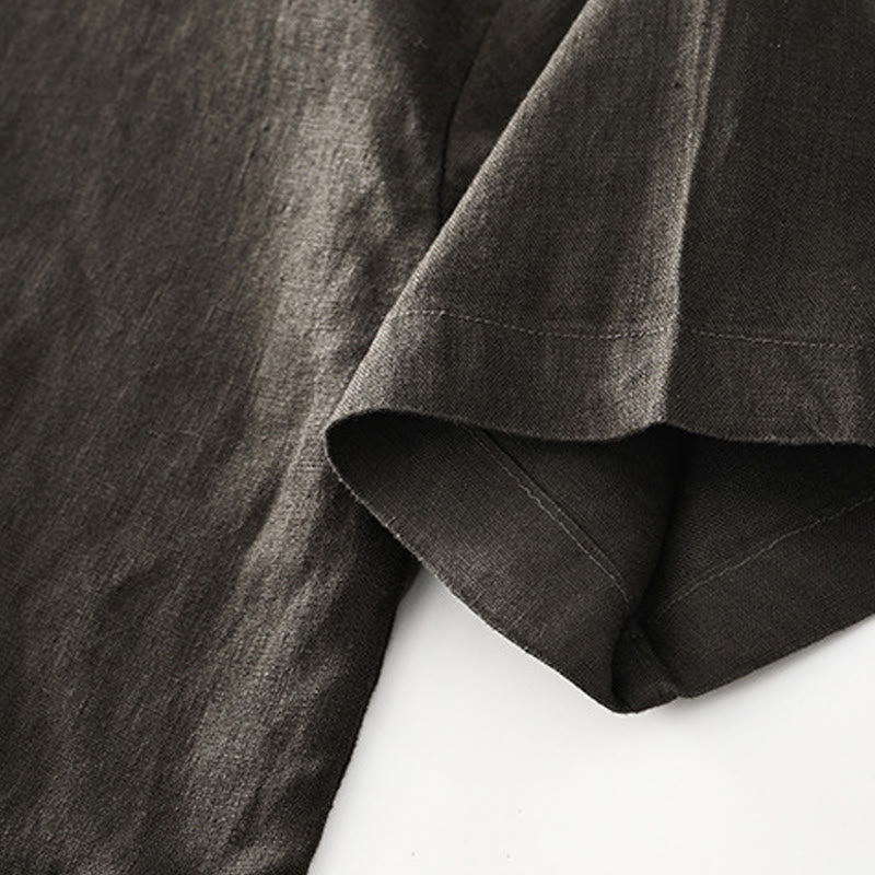 Buddha Stones Solid Summer Short Sleeve Buttons Linen Men's Shirt With Pockets