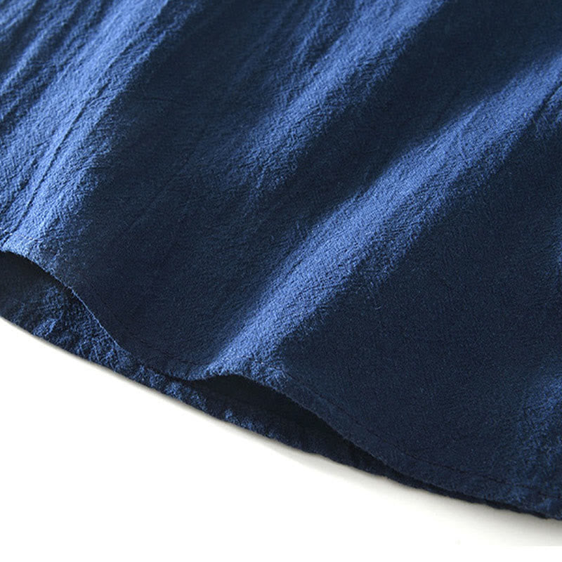 Buddha Stones Spring Fall Solid Long Sleeve Half Button Cotton Men's Shirts - Navy - US/UK/AU44,EU54 (4XL) - image 3