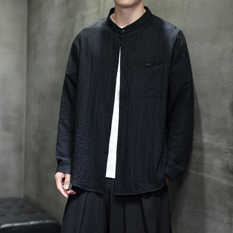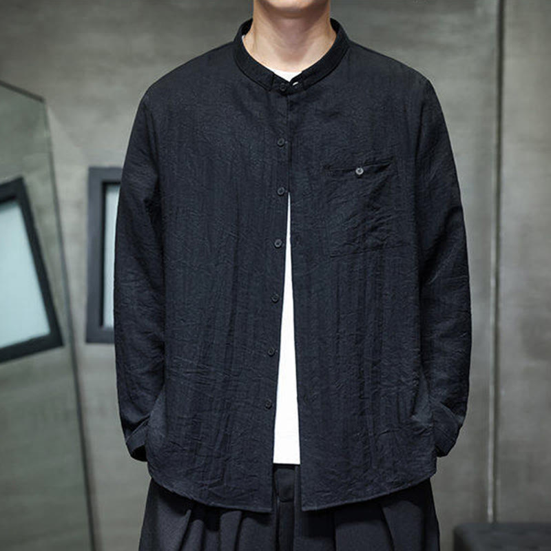 Buddha Stones Spring Men's Solid Color Buttons Design Long Sleeve Shirt