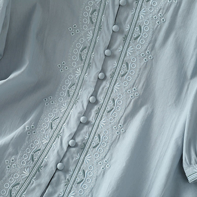 Buddha Stones Symmetrical Embroidery Cotton Women's V-neck Shirt - image 29