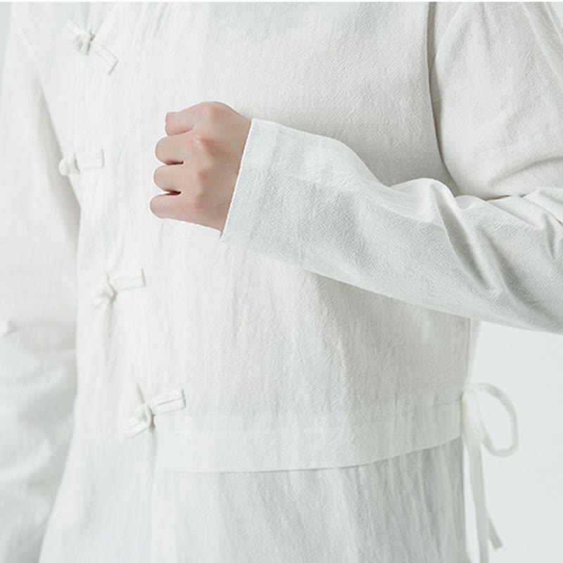 Buddha Stones Vintage Chinese Frog-Button Cotton Long Sleeve Men's Shirt - White - US/UK/AU46,EU56 (5XL) - image 1