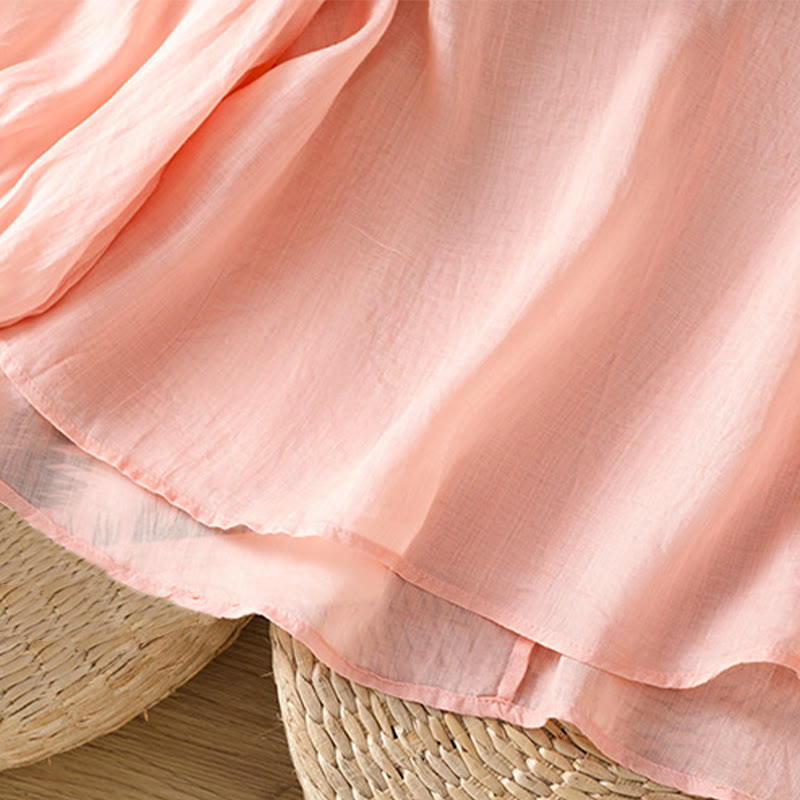 Buddha Stones Embroidery Button Three Quarter Sleeve Notched Neck Women's Cotton Shirt - LightSalmon - US12,UK/AU16,EU44 (2XL) - image 8