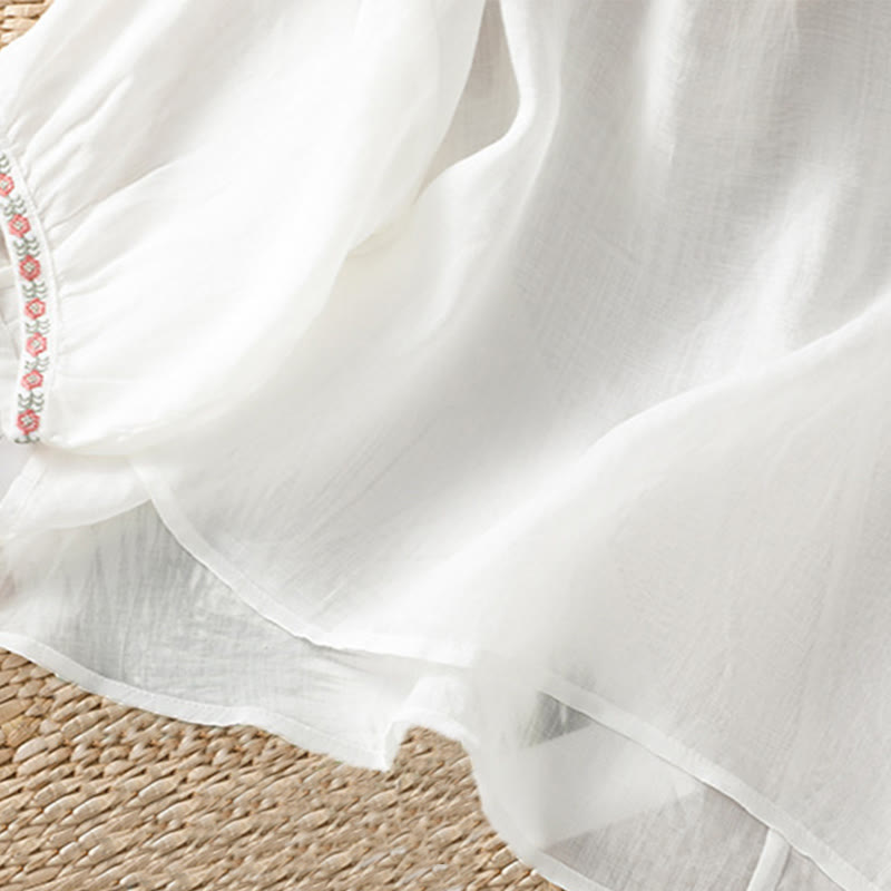 Buddha Stones Embroidery Button Three Quarter Sleeve Notched Neck Women's Cotton Shirt - White - US12,UK/AU16,EU44 (2XL) - image 16