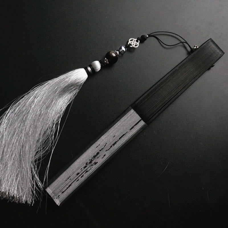 Buddha Stones Ink Bamboo Polyester Handheld Bamboo Folding Fan - Ink Bamboo 21cm-With Tassel&Brocade Box&Fan Cover (Pre-Sale) - image 9