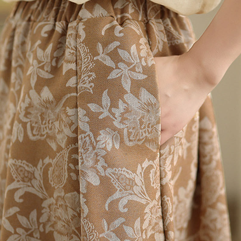 Buddha Stones Printing Flower Paisley Pattern A-line Elastic Waist Cotton Women's Skirt With Pockets - BurlyWood - US8-10,UK/AU12-14,EU40-42 (2XL) - image 8