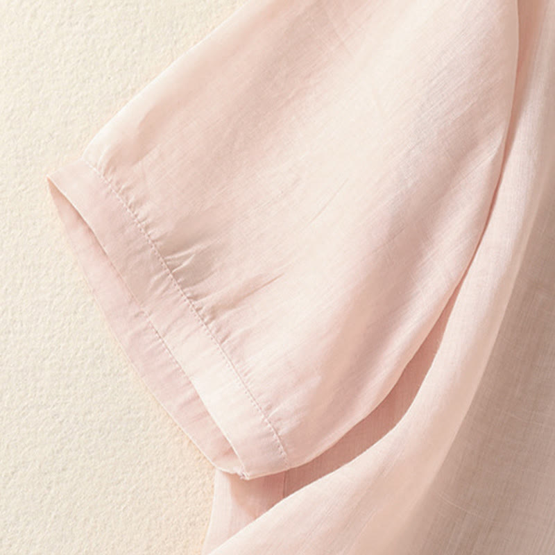 Buddha Stones Summer Embroidery Flower Lace-up Design Notched Collar Women's Short Sleeve Shirt - MistyRose - US8-10,UK/AU12-14,EU40-42 (2XL) - image 16