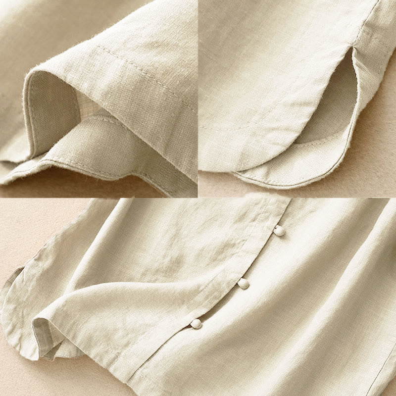 Buddha Stones Summer Women's Cotton Short Sleeve Stand Collar Side Slit Frog-Button Design Shirt