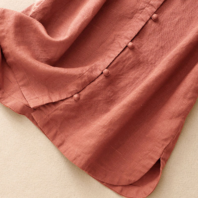 Buddha Stones Summer Women's Cotton Short Sleeve Stand Collar Side Slit Frog-Button Design Shirt - DarkSalmon - US8-10,UK/AU12-14,EU40-42 (2XL) - image 7